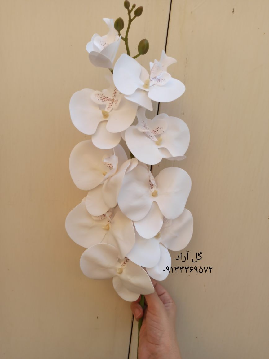 هر شاخه دارای ۹ گل است. ارکیده وارداتی با کیفیت عالی و بدون تغییر رنگ است. ارتفاع هر شاخه بیش از یک متر است.